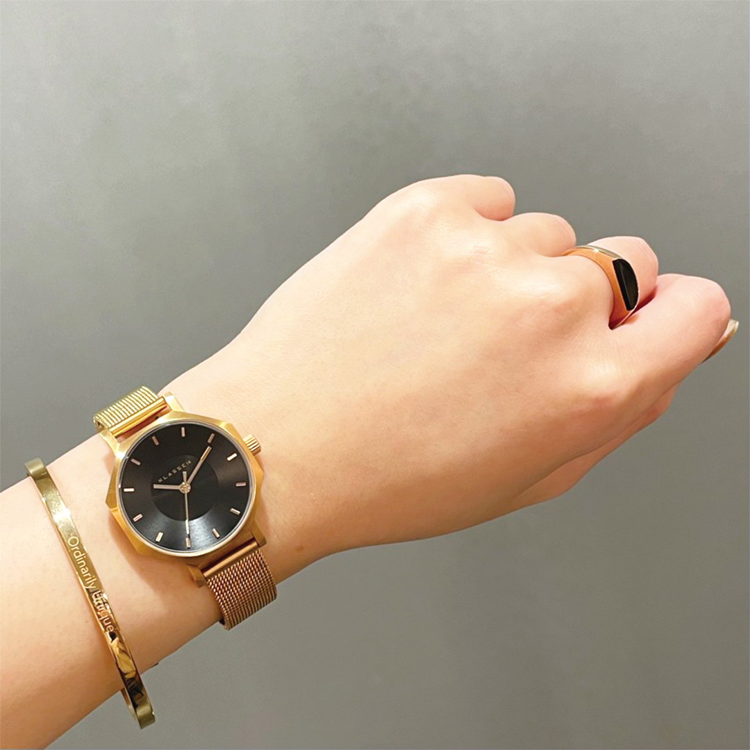 カラー:ローズゴールドケース・ストラップ/ブラックフェイス(付属:ローズゴールドバングル)