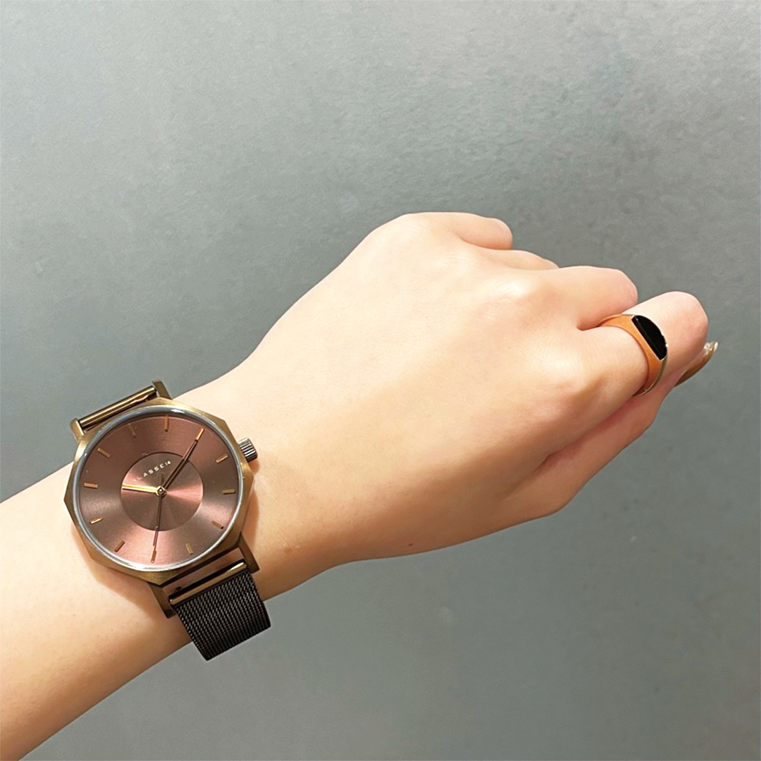 カラー:ヴィンテージゴールドケース・ストラップ/ダークブラウンフェイス(付属:ヴィンテージゴールドバングル)