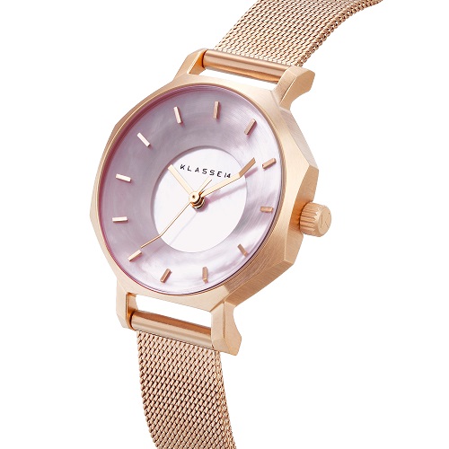 Volare OKTO Rose Gold Pink MOP with Mesh Strap 28mm