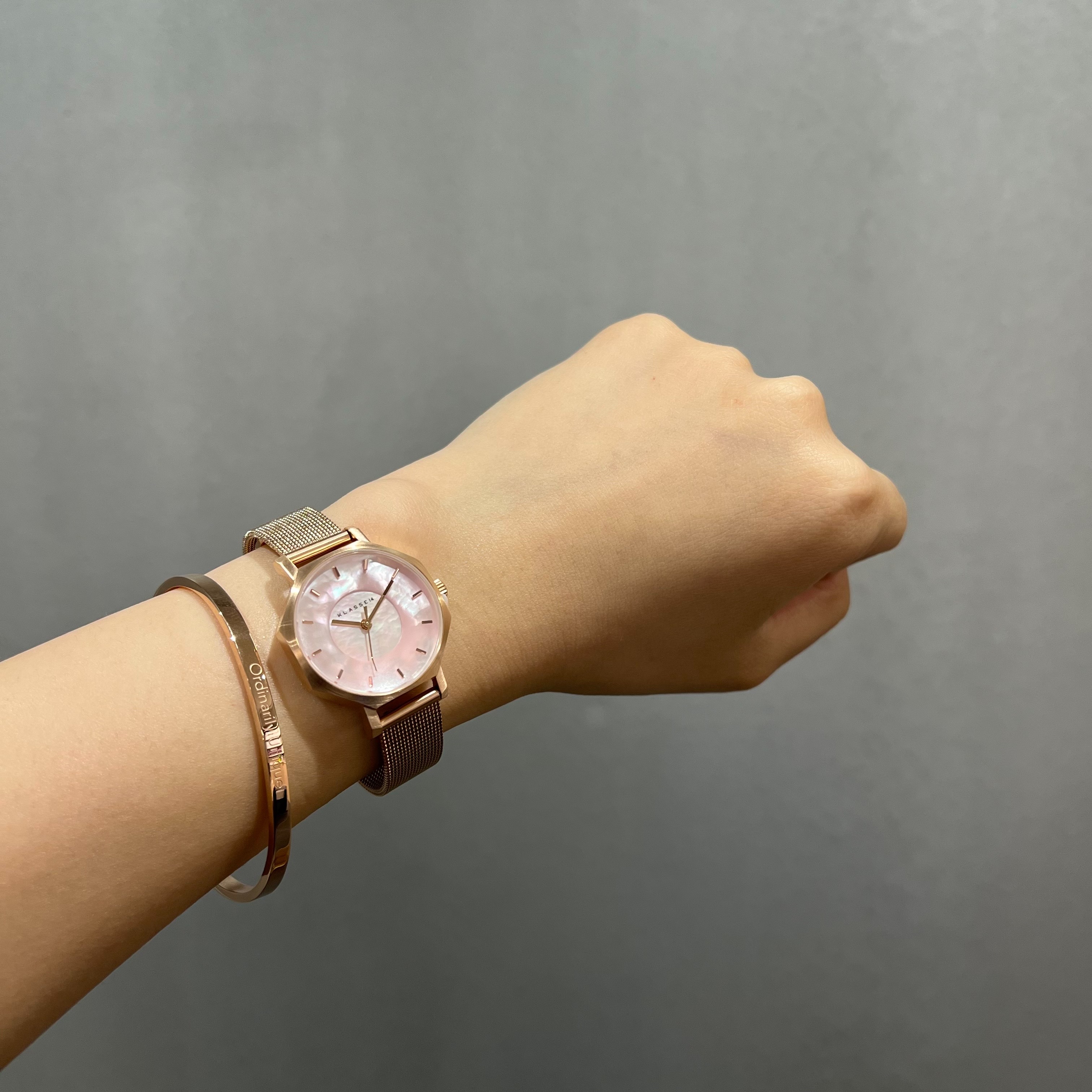 カラー:ローズゴールドケース・ストラップ/ピンクパールフェイス(付属:ローズゴールドバングル)
